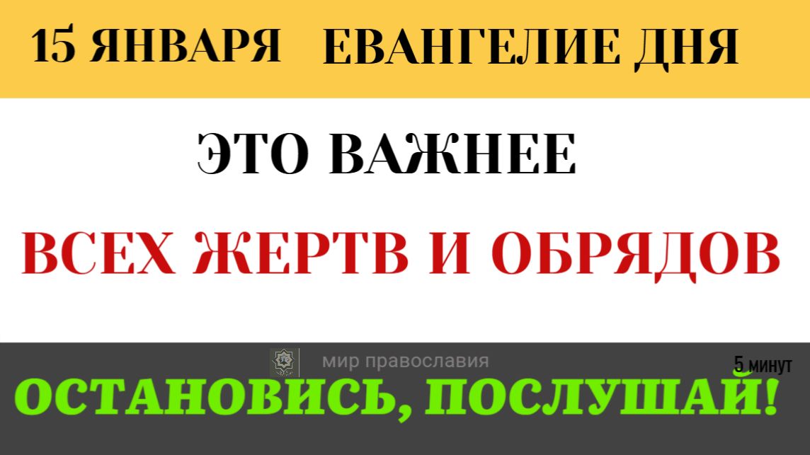 15 января мы читаем о главной заповеди в Законе. Христос похвалил книжника, сказав: «Недалеко ты от Царствия Божия». Святые отцы (Златоуст, Феофилакт, Григорий Нисский) объясняют: почему «недалеко» — это диагноз, а не комплимент? Что значит любить Бога «всею крепостию»? Почему любовь важнее всех церковных жертв и обрядов? И как Христос доказал Свое Божество одной цитатой из псалма? Теги: #Евангелие #ТолкованиеСвятыхОтцов #ГлавнаяЗаповедь #Мк12 #5минут #СынДавидов #НедалекоОтЦарствия #15января #Проповедь #ПравославиеПоблагодарить, поддержать: Сб. 2202 2061 0335 2154 (напишите имена в сообщение их помянут за богослужением, укажите, если инославные) Записки в храм https://ikoni.cerkov.ru/zapiski-v-xram/ #Евангелиедня #календарь #церковный Где ещё можно смотреть выпуски: Рутюб https://rutube.ru/channel/1540928/ ВК https://vk.com/clubmirprav TELEGRAM https://t.me/Mirprav www.optina.ru (молитва оптинских старцев) #мирправославия Нажимая на "Мне нравится" и "Рассказать друзьям" - вы помогаете распространению Слова Божьего!