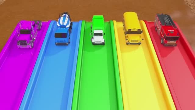 Цветные мячики и машинки! Учим цвета с Уличными Транспортами и ПАКМАНОМ на Водяной Горке!