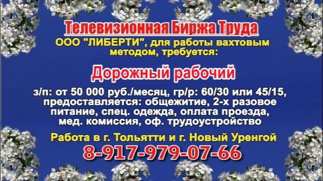 Вакансии и телефоны прямых работодателей в специализированной программе по трудоустройству "Телевизионная Биржа Труда" - г.САМАРА, г.ТОЛЬЯТТИ