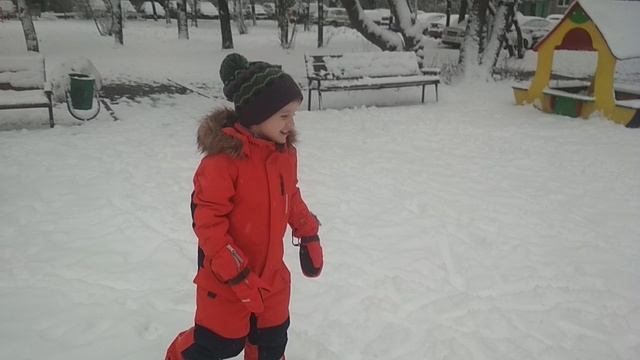Играем в снежки с папой на детской площадке
