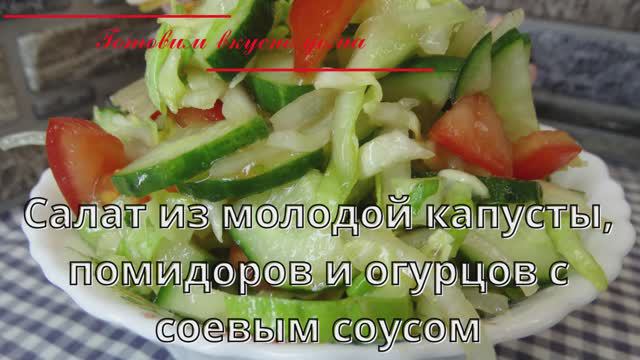 Салат из молодой капусты, помидоров и огурцов с соевым соусом