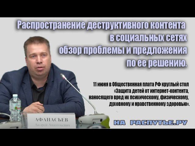 11 июня в Общественной плате РФ состоялся круглый стол «Защита детей от интернет-контента, наносящего вред их психическому, физическому, духовному и нравственному здоровью». Организатор — Комиссия ОП РФ по демографии, защите семьи, детей и традиционных семейных ценностей. ссылка на полную версию - https://youtu.be/GlsNaOZdLE0 Участники: Пожигайло Павел Анатольевич Общественная палата Российской Федерации Первый заместитель председателя Комиссии по демографии, защите семьи, детей и традиционных семейных ценностей Жгутова Элина Юрьевна РОО «Общественный центр по защите традиционных семейных ценностей «Иван Чай» Руководитель Кравченко Наталья Васильевна Общественная палата Российской Федерации Председатель Комиссии по развитию дошкольного, школьного, среднего профессионального образования и просветительской деятельности Мизулина Екатерина Михайловна Общественная палата Российской Федерации Член Комиссии по развитию информационного сообщества, СМИ и массовых коммуникаций Земцов Николай Георгиевич Государственная Дума Федерального Собрания Российской Федерации Член Комитета по развитию гражданского общества, вопросам общественных и религиозных объединений Юмашева Инга Альбертовна Государственная Дума Член Комитета по вопросам Федерального Собрания Российской Федерации семьи, женщин и детей Бокова Людмила Николаевна Министерство просвещения Российской Федерации И. О. директора ФГАУ «Федеральный институт цифровой трансформации в сфере образования» Артамонова Елена Геннадьевна Министерство просвещения Российской Федерации Заместитель директора ФГБУ «Центр защиты прав и интересов детей» Стебенкова Людмила Васильевна Московская городская дума Председатель комиссии по межпарламентскому сотрудничеству Ашманов Игорь Станиславович ZOOM АО «Крибрум» Президент, Кандидат технических наук Григорьев Олег Александрович Доктор биологических наук, лауреат Премии Правительства РФ в области науки и техники Швабауэр Анна Викторовна ZOOM Общественный уполномоченный по защите семьи Эксперт, к.ю.н. Шафран Анна Борисовна ТК Спас Теле- и радиоведущая Будина Ольга Александровна российская актриса театра и кино Цыганов Андрей Борисович Общественный совет при Роскомнадзоре Член Дмитриевская Наталья Вильевна Союз православных женщин Председатель регионального отделения по г. Москва Хасьминский Михаил Игоревич Центр кризисной психологии Руководитель, Член Общественного совета при ФСИН России Афанасьев Андрей Анатольевич Аналитический сайт Нараспутье.ру Руководитель Васильев Владимир Владиславович Московского областного регионального совета Родительского Всероссийского Сопротивления Председатель Жилина Надежда Николаевна АНО социально-правовой поддержки семей с детьми