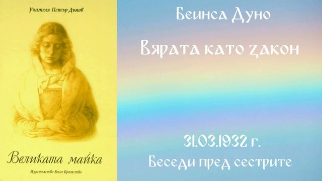 1932- 03-31 Вярата като закон Великата майка, чете Цвета Коцева