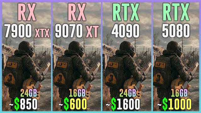 RX 7900 XTX vs RX 9070 XT vs RTX 4090 vs RTX 5080 - Test in 20 Games 1080p, 1440p, 2160p, 4k, 2k, dlss 4, dlss 3.7, fsr 4, fsr 3.1, ray tracing, frame generation, native, Multi Frame Generation ⏩GPUs & Amazon US⏪ (Affiliate links) 💥RX 7900 XTX 24GB: https://amzn.to/3YOZB6q 💥RX 9070 XT 16GB: https://amzn.to/4bxyEKX 💥RTX 5080 16GB: https://amzn.to/4jyqKER 💥RTX 4090 24GB: https://amzn.to/3qBVi1l ⏩PC Setup⏪ - OS: Windows 11 Professional 64-bit - CPU: Ryzen 7 9800X3D - MB: GIGABYTE X870 AORUS Elite - RAM: Corsair Vengeance RGB 32GB DDR5 - 6400 Mhz CL32 💁♂️ When you buy from my Amazon links, I earn a small commission at no extra cost to you, plus you support the channel thank you.