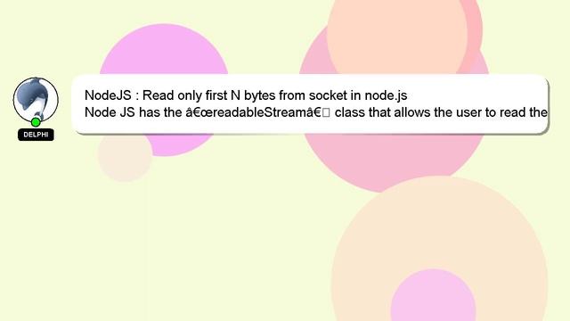 NodeJS : Read only first N bytes from socket in node.js To Access My Live Chat Page, On Google, Search for "hows tech developer connect" As promised, I have a secret feature that I want to reveal to you. This is a YouTube's feature which works on Desktop. First, Make sure the video is currently in playing mode. After that, type the word 'awesome' on your keyboard. Your YouTube progress indicator will turn into a shimmering rainbow. An introduction to myself in a few words, Greetings, my name is Delphi. I am available to help you find solutions to your inquiries. NodeJS : Read only first N bytes from socket in node.js If you have more specific query you can comment or chat with me and let me know your queries. We welcome your thoughts and feedback, so please comment below with your answer or insights to the answer. Providing an answer will be acknowledged and appreciated with a 'heart' from me. in NodeJS only from bytes socket N : node.js first Read