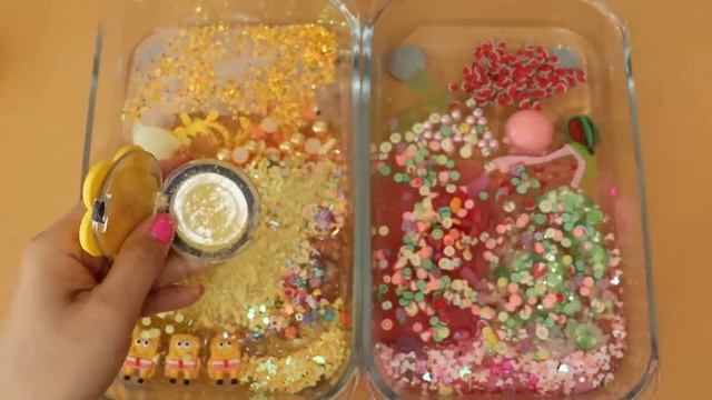 Смешиваем «Желтый VS Арбуз» макияж, детали, блёстки в слайм! Видео со слаймом!★ASMR★
