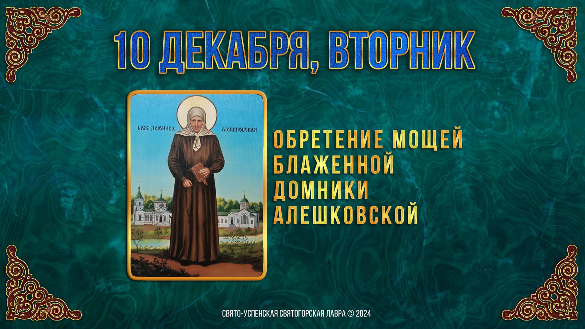Обретение мощей блаж. Домники Алешковской. 10 декабря 2024 г. Православный мультимедийный календарь