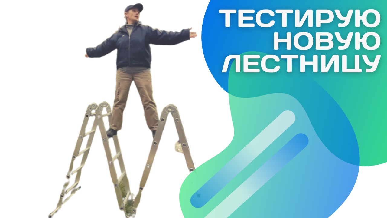 У меня есть новая лестница, это трансформер, который раскладывается в пять положений. Теперь я смогу с удобством обрезать дереья и собирать с них урожай. А также забираться на крыши всех дачных строений, если это требуется.