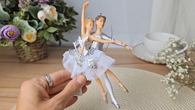 Ёлочная игрушка СЕРЕБРИСТОЕ ПА-ДЕ-ДЕ, полистоун, текстиль, 15 см, 1101560-1