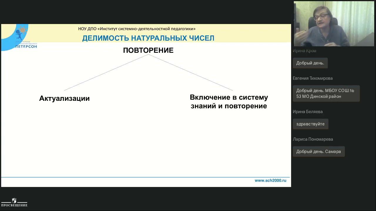 Спикеры: - Грушевская Л.А., Старший методист Института СДП, автор-разработчик учебно-методических пособий для начальной и основной школы по программе математики Л.Г.Петерсон "Учусь учиться" - Саблина С. В., методист по математике Института СДП