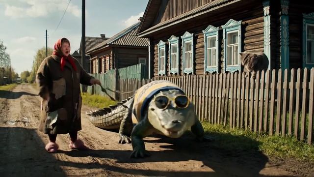 ИИ бабуля с крокодилом