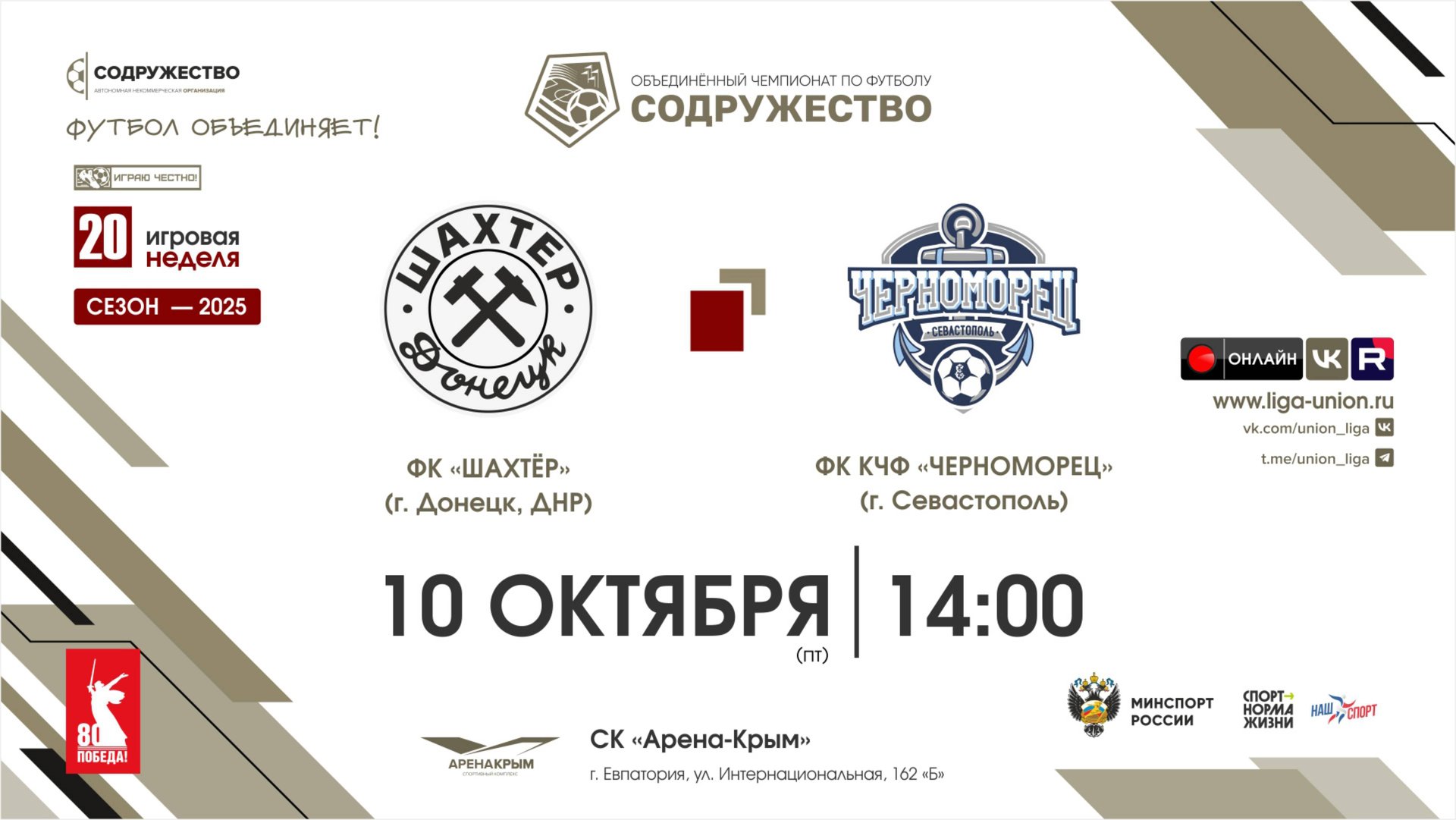 20 неделя (2025) | ФК "Шахтёр" (Донецк, ДНР) - ФК КЧФ "Черноморец" (Севастополь) | 10.10.2025