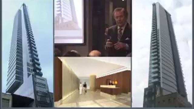 New York was the birthplace of the improbably slender tower in the late nineteenth and early twentieth century when numerous buildings, such as the 1917 Bush Tower on W. 42nd Street or the 1897 Gillender Building at Wall and Nassau streets, rose as tall shafts over every inch of their very narrow and high-priced lots. "That was before the city imposed zoning laws that restricted, first, building heights and setbacks, then later, a maximum FAR (floor area ratio) formula," explains Skyscraper Museum director Carol Willis. "To erect a very tall building on a small site under today's zoning, a developer must purchase available air rights from adjacent low-rise properties." The three buildings featured in the evening's program are the most slender towers recently completed, but also part of a renaissance of the type in New York. Sky House is a 55-story through-block thin slice of a building with a 45-foot façade on E. 28th Street, between Fifth and Madison avenues, and only 35 feet on 29th Street. The slenderness ratios for its 588-foot height are therefore 1:13 and 1:17. Similarly, the 42-story spike of 785 Eighth Avenue occupies a wedge-shaped site with narrow frontage of just 23 feet, 8 inches on its narrow side, so has a ratio of 1:18. At 621 feet, One Madison Park, a stack of glass cubes stretching 50 stories, is the tallest of the three buildings, but also relatively fat with a ratio of 1:12. Other tall, thin towers announced, or in the early stages of construction, include 610 Lexington Avenue, as well as 30 Park Place, 50 West Street, and 45 Broad Street, all in lower Manhattan. http://www.skyscraper.org/PROGRAMS/slender_program.htm