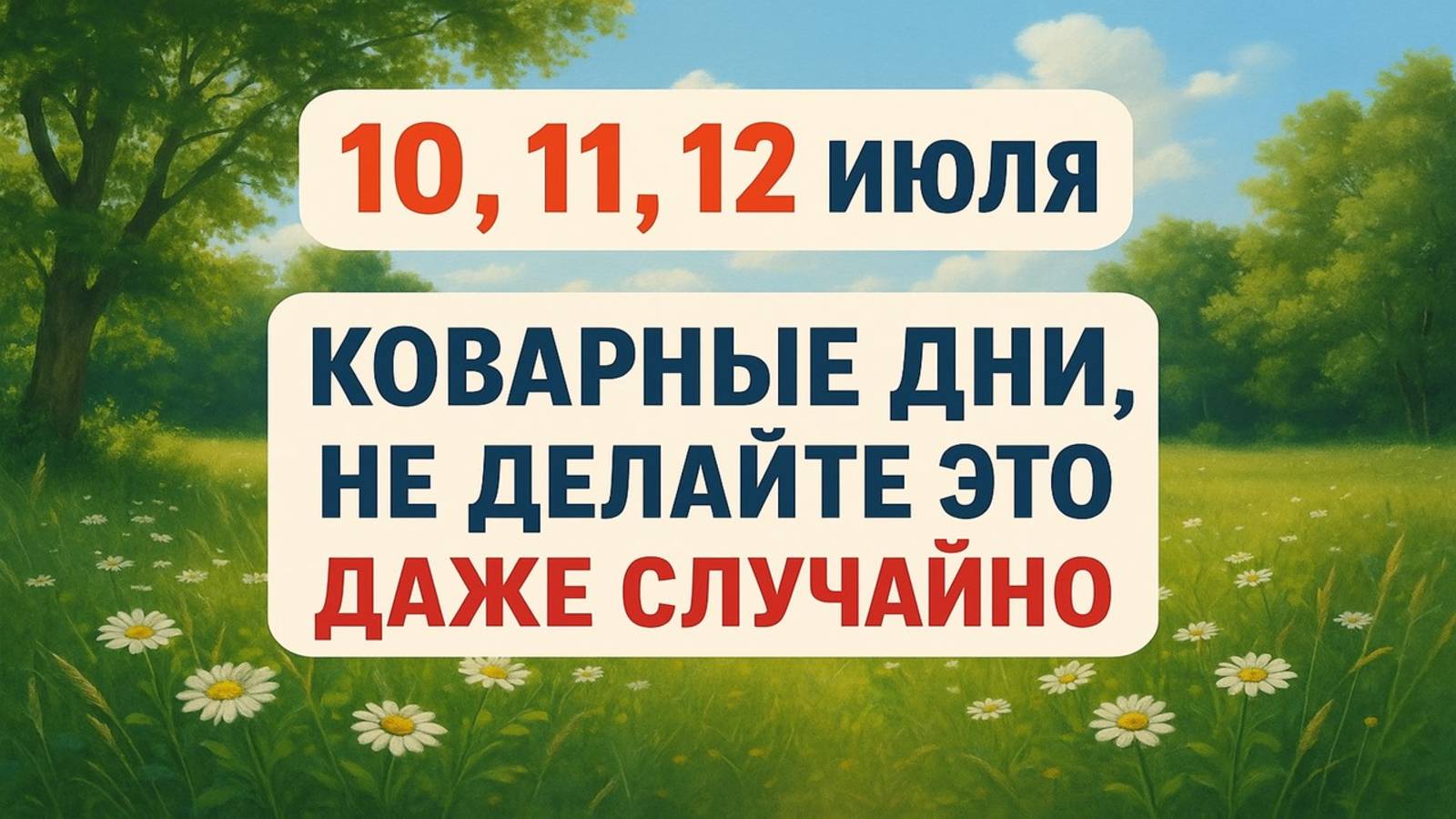 В этом видео вы узнаете, какие народные приметы, ритуалы и обряды нужно соблюдать 10, 11 и 12 июля – в самые опасные и коварные дни лета 2023 года! Почему в эти июльские дни категорически нельзя делать определённые действия, чтобы не навлечь на себя бедность, болезни и неудачи? Какие древние народные приметы и советы помогут вам сохранить деньги, улучшить здоровье и привлечь удачу? Вы получите ценную информацию о том, почему 10 июля нельзя одалживать деньги и вступать в конфликты, чем опасно разбить зеркало именно в этот день, и почему стоит отложить дальние поездки. Узнайте, какие строгие запреты связаны с 11 июля: что категорически запрещено рассказывать окружающим и почему нельзя избавляться от старых вещей, чтобы не потерять благополучие. А также, вы откроете тайны 12 июля – почему нельзя подбирать найденные вещи и отдавать вещи из дома, и какие последствия вас ожидают, если подстричь волосы или пересадить растение в этот день. Кроме важных предостережений, вы узнаете эффективные народные ритуалы и обряды, проверенные веками, которые помогут вам избежать несчастий, привлечь достаток, удачу и здоровье. Какие слова произносить перед сном, как зарядить воду и соль, какой обряд нужно провести со свечами и что обязательно положить в кошелек? Смотрите это видео до самого конца, чтобы полностью обезопасить себя и близких от опасностей и ошибок, избежать бедности и болезней, и открыть двери для счастья и удачи! Поделитесь этим видео с друзьями и родными, чтобы защитить их от возможных неприятностей. Поставьте лайк прямо сейчас и напишите в комментариях свою волшебную аффирмацию на удачу и благополучие!