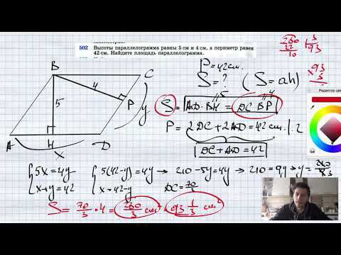 №502. Высоты параллелограмма равны 5 см и 4 см, а периметр равен 42 см. Найдите площадь параллелогра