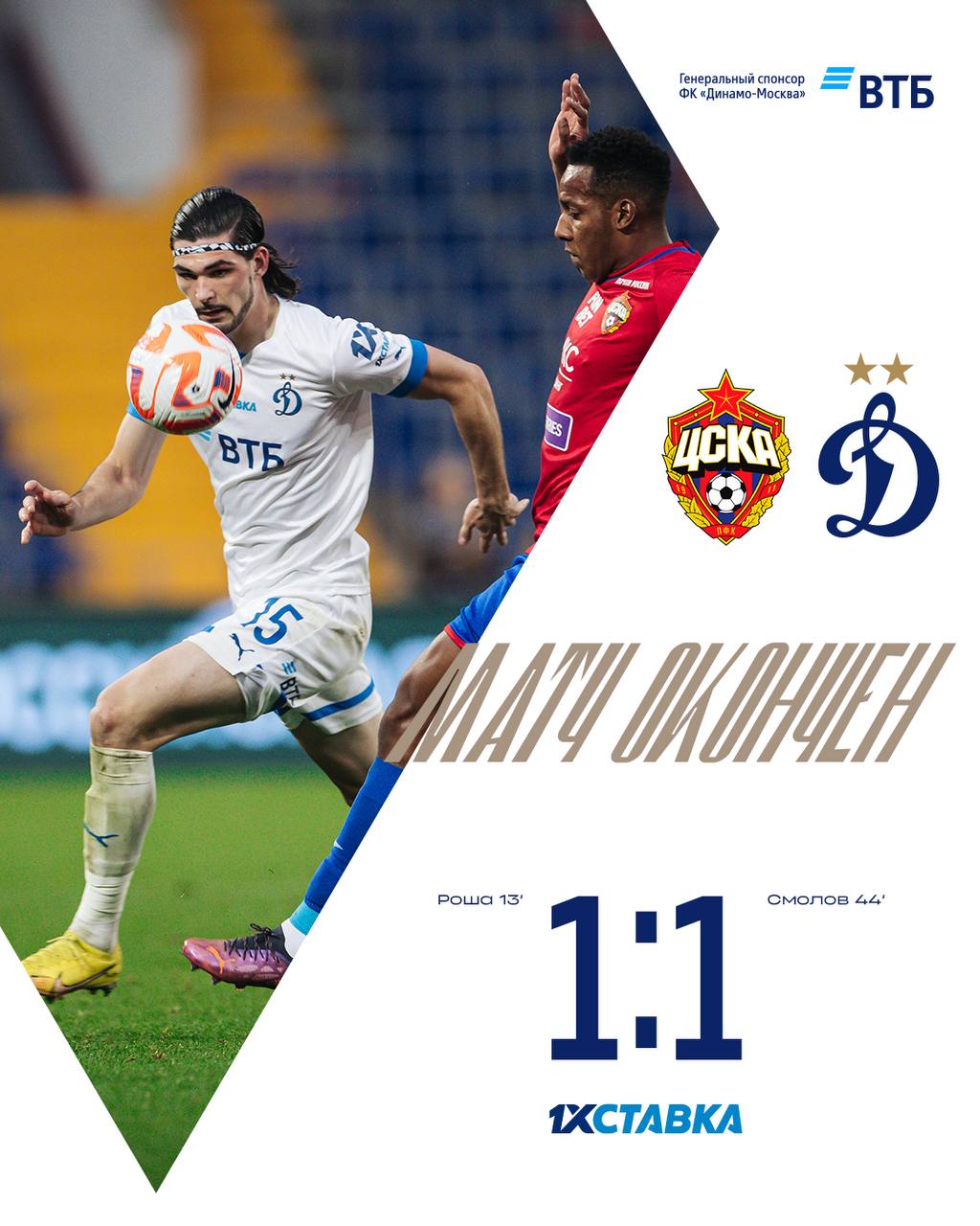 В матче 12 тура чемпионата России по футболу встречались московские команды ЦСКА и Динамо. ЦСКА резво начал матч и быстро забил гол. И так же имел достаточно моментов чтобы забить больше. Но Динамо отыгралось.