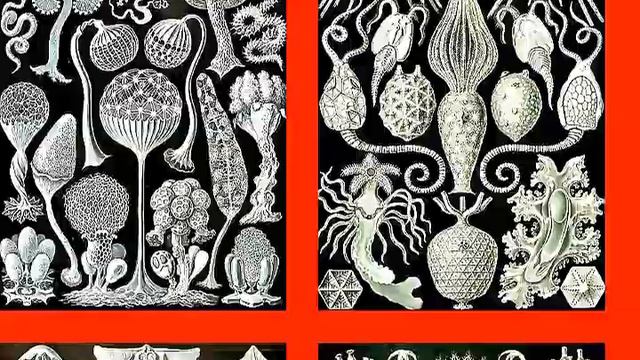 La gran obra de Ernst Heinrich Philipp August Haeckel (16 de febrero de 1834 – 9 de agosto de 1919). Música: variaciones sobre "De Tous biens" de Hayne van Ghizeghem (c 1445 – c 1497) , compositor franco-flamenco de comienzos del Renacimiento; maestro de capilla de la catedral de Cambrai y de la corte de Carlos el Temerario en 1462. De su obra se han conservado dos canciones a cuatro voces y una a tres voces en el Odhecaton de Ottaviano Petrucci (1501) y otra a tres voces en el Trium vocum carmina de Hieronymus Formschneider (1538).