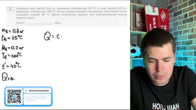 Смешали воду массой 0,8 кг, имеющую температуру 25 °С, и воду массой 0,2 кг, имеющую - №20162