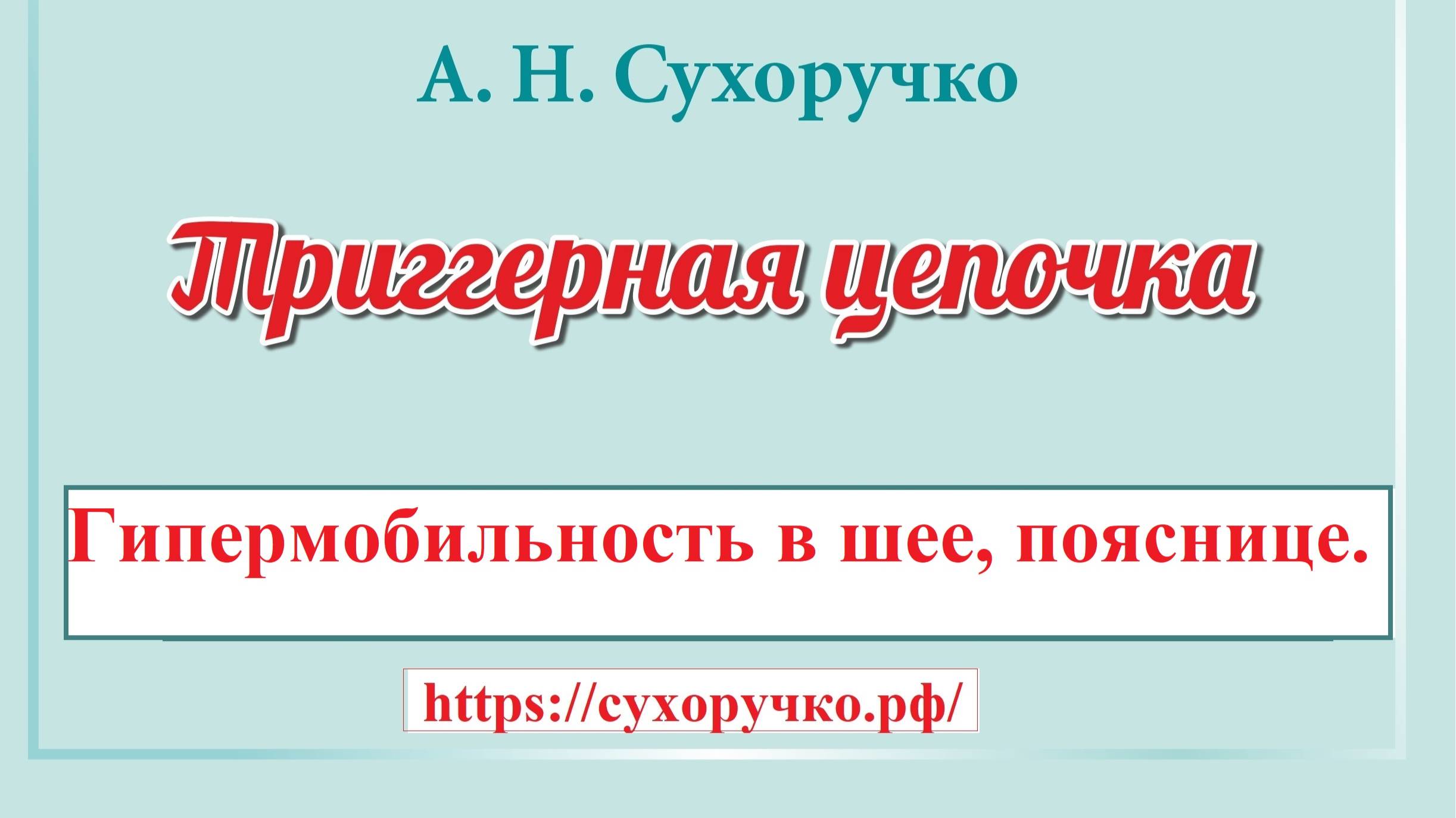 Гипермобильность в шее, пояснице – это слабость мышц в которых имеется триггер/тендомиоз, которое присутствует при боли в голове, пояснице, но ПРИЧИНОЙ БОЛИ, ОНЕМЕНИЯ, ГИПЕРМОБИЛЬНОСТЬ НЕ ЯВЛЯЕТСЯ. Однако, при наличии гипермобильности мануальная терапия, остеопатия, костоправство, вытяжение - противопоказаны. Сухоручко А.Н. «Тендомиотерапия» — это русская инновационная концепция оздоровления организма, без: неврологии, лекарств, МРТ, УЗИ, нейрохирургии, остеопатии, мануальной терапии, костоправства, тренажёров. Концепция состоит из методик «Статик Про», «Триггерная цепочка», «Тонус Ап!», «Атлант СТ», «Гармония слова». С помощью концепции устанавливается диагноз, определяется тактика оздоровления и профилактики; устраняются боли, головокружение, онемение; восстанавливается и укрепляется работа мышц, связок, позвоночника, суставов; вертикализируется осанка; улучшается функция психической, сердечно-сосудистой, дыхательной, половой систем. Почувствуй легкость, энергию, силу — без мигрени, грыжи диска, остеохондроза, невралгий, артроза, сколиоза, панической атаки! Освободись от мифов неврологии, нейрохирургии, ортопедии, остеопатии; мануальной, висцеральной, кранио-сакральной, кинезиотерапий! Владей новой информацией и, будь здоров! Подробней читать в книге А.Н. Сухоручко "Триггерная цепочка. Энциклопедия здоровья позвоночника и суставов" / https://сухоручко.рф/