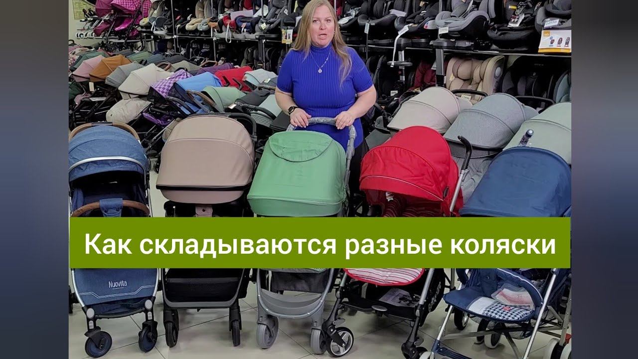 Прогулочные коляски отличаются по типу складывания. Показываем в этом видео, как складываются разные типы колясок.