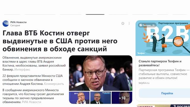 Глава ВТБ Костин отверг выдвинутые в США против него обвинения в обходе санкций