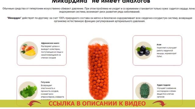 ⤵⤵ ЖМИ НА ССЫЛКУ В КОММЕНТАРИЯХ ⤵⤵ 🔔 МИКАРДИН — ПРИВЕДЕТ ДАВЛЕНИЕ В НОРМУ ЗА 1 КУРС Продукты снижающие давления Последнее вещество “Микардин” избавит от давления, почистит сосуды, защитит сердце и уменьшит возможность инсульта. Каким образом воздействует МИКАРДИН: - Африканский манго очищает сосуды от шлаков и холестерина. - Тамаринд снимает сжатие сосудов, стимулированный стрессами. - Квандонг понижает рискованность инфаркта и инсульта. - Асаи сохраняет сердце от перегруженностей. - В итоге — стойкая нормализация давления за 4-5 недель. Эксперты уточнили 3 первостепенные первопричины гипертонии. В настоящее время в Нашем государстве сорок миллионов человек мучается высоким давлением, а 30 лет назад гипертоников было в 10 (.) раз меньше. Разобрав медицинскую картину, эксперты пришли к выводу: причина подъема болезней кроется в деструктивных изменениях, случившихся в конце распада Советского Союза, в образе жизни жителей россии. 1 - Испортилось высокое качество продуктов питания. В итоге: просвет сосудов забивается шлаками и холестерином, снижается их пластичность. 2 - Улетучилась уверенность в будущем дне. Следствие: нервные стрессы, нервный спазм сосудов, повышение сердечного импульса, разрастание длительности сердечных сокращений. 3 - Оказались на вес золота занятия плаванием. Давление 150 на 90 у женщины 40 лет что делать. Исход: ослабление сердечной мышцы, регресс капиллярного кровотока, обмена веществ, питания органов человека. Сбить давление без таблеток быстро и эффективно. Вывод: высокое давление крови. Таблетки для уменьшения пульса сердца. “Микардин” приводит в норму давление, действуя на первопричины гипертонии. Как снизить давление и какие таблетки. 1 - Освобождает стенки сосудов от отложений из продуктов. Таблетки скорая помощь при высоком давлении цена. Микроэнзимы Африканского манго и Готу Кола растворяют шлаки и холестерин на стенах сосудов и выводят их из тканей. Гипертонический криз в домашних условиях. 2 - Снимает сокращение сосудов, вызванный стрессами. Препараты резко снижающие давление. Активные ингридиенты Тамаринда и Худия Гордони взаимодействуют с рецепторами клеток гипоталамуса и снимают нервный спазм сосудов, увеличивают просвет. Как быстро снижает давление лориста. 3 - Укрепляет и оптимизирует работоспособность сердца Естественные бета-адреноблокаторы Асаи, Канадской голубики и Квандонга улучшат питание миокарда и оздоровляют сердечный ритм. Чем можно повысить давление в домашних условиях быстро без таблеток быстро и эффективно. Гипертоническая болезнь приводит к неисправимым последствиям для здоровья. Какой напиток нормализует давление. Сделайте простой шаг к спасению от нее немедленно. Таблетки от давления на букву к список. Продукты снижающ
