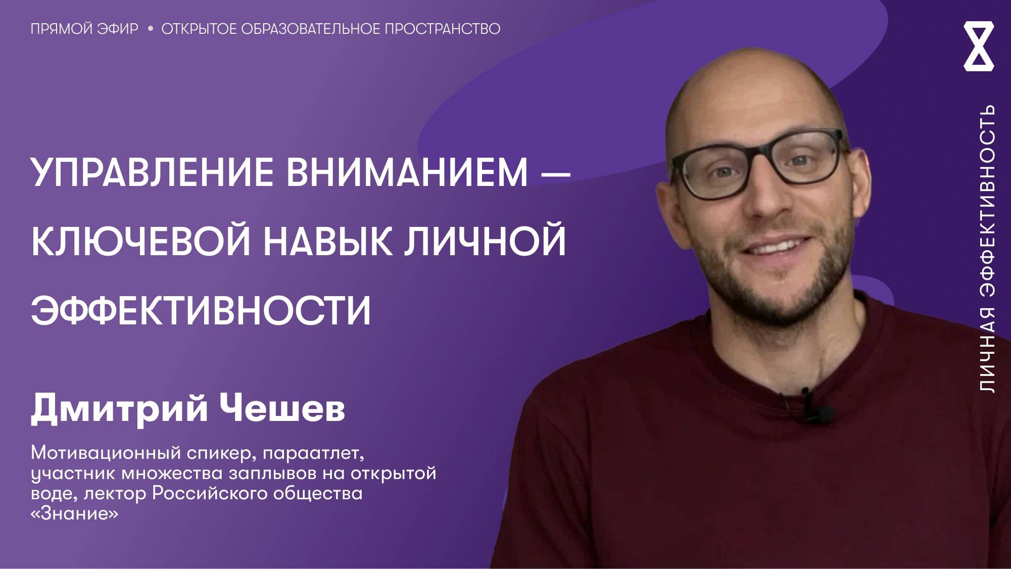 Во все времена люди хотели успевать больше, быть лучше и результативнее. Однако современная эпоха вносит свои коррективы в понятие личной эффективности. Если раньше в основе техник продуктивности лежало управление временем, то современные исследования показывают: ключевой ресурс человека — это не его время, а внимание, которое он направляет на ту или иную деятельность. Именно управление вниманием стало ключевым навыком личной эффективности. Сегодня эффективный человек — тот, кто умеет расставлять приоритеты и фокусироваться на важном, глубоко погружаться в работу, долго сохранять мотивацию и не сходить с выбранного пути. Темы ❗️ Как научиться расставлять приоритеты в жизни и работе и тратить силы только на то, что дает наибольший результат ❗️Как фокусировать внимание на одной задаче долгое время, чтобы выполнять сложную работу, требующую глубокого погружения ❗️Что помогает контролировать отвлекающие факторы и не мешает концентрации внимания ❗️Каким образом связаны внимание и энергия человека и почему управление вниманием помогает нам сохранять силы Для кого вебинар? Для всех, кто хочет научиться не упускать важное, расставлять приоритеты и сохранять мотивацию Дмитрий Чешев, мотивационный спикер, параатлет, участник множества заплывов на открытой воде, лектор Российского общества «Знание» Сергей Журихин, проректор по повышению квалификации Университета Правительства Москвы