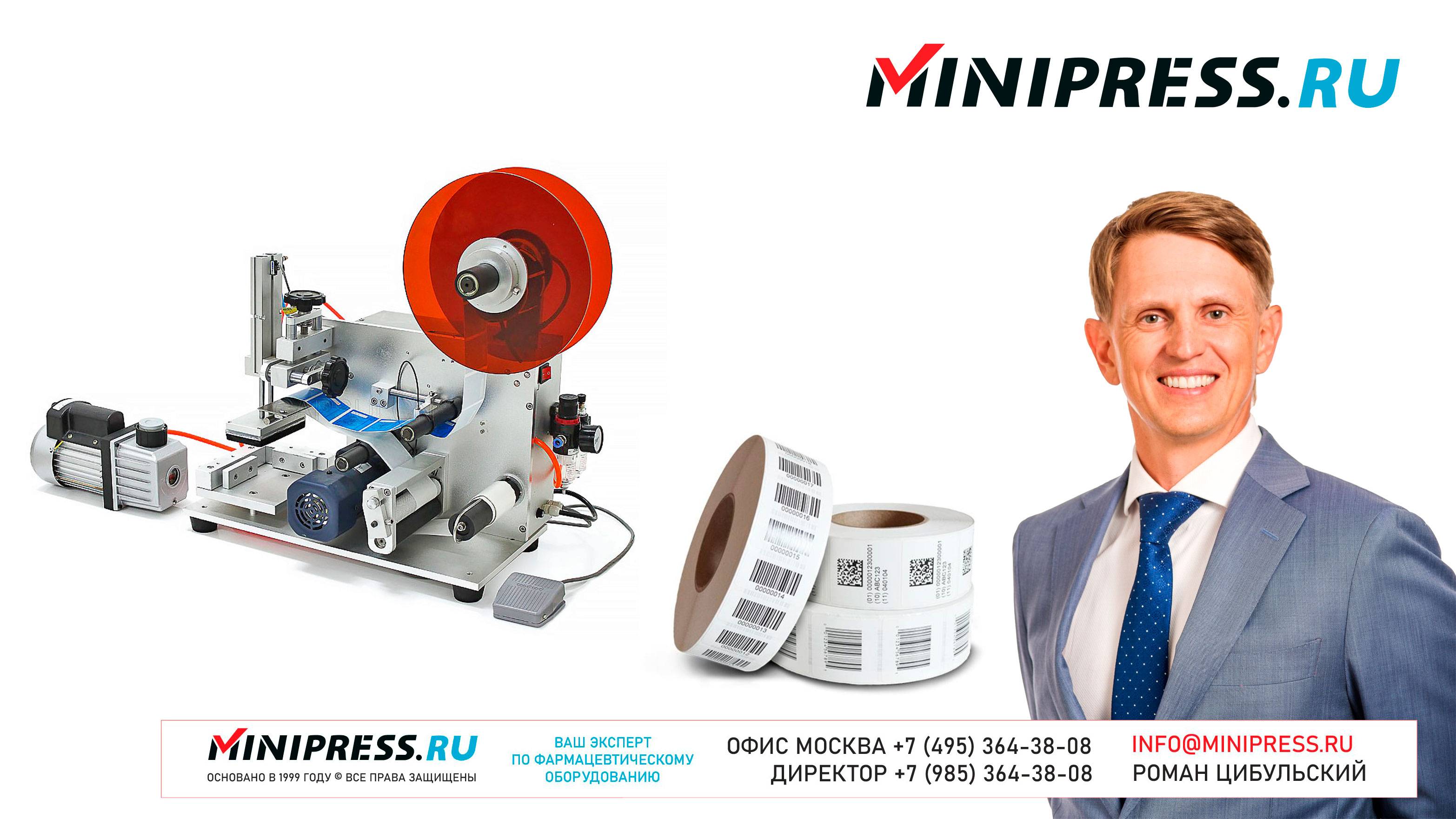 Машина для наклейки самоклеящихся этикеток на картонные коробки МТ-05 https://Minipress.ru/katalog/ Фармацевтическое оборудование. Специалисты в фармацевтическом оборудовании и технологиях производства лекарств. Более 20 лет оказываем нашим клиентам помощь в выборе, поставке, наладке различного фармацевтического оборудования! Вы в поиске надежного поставщика оборудования? Мы предоставим вам лучший сервис 24/7. Собрана лучшая команда профессионалов в фармацевтической отрасли и налажены стабильные связи с лучшими производителями. Мы не только продаем, но и производим многие модели оборудования Директор компании Минипресс Роман Цибульский Поставка фармацевтического оборудования в Россию Пишите: info@minipress.ru Телефон +7(495)364-38-08; Мобильный +375(29)308-00-00 Россия, Москва Skype: RomanTsibulsky; ICQ: 310-134-490 Подписывайтесь на наш видео канал на Youtube https://youtube.com/user/wwwMinipressru Обновленный сайт https://Minipress.ru Каталог оборудования https://Minipress.ru/katalog/ МЫ В СОЦИАЛЬНЫХ СЕТЯХ G+ https://plus.google.com/+RomanTsibulsky/ FB https://facebook.com/roman.tsibulsky YOUTUBE https://youtube.com/user/wwwMinipressru IN https://ru.linkedin.com/pub/roman-tsibulsky/a6/933/661 БОЛЬШОЙ КАТАЛОГ ФАРМАЦЕВТИЧЕСКОГО ОБОРУДОВАНИЯ https://minipress.ru/katalog/ Постоянно обновляемый каталог различного фармацевтического оборудования с фотографиями, описаниями, видео и ценами. ПЕРСОНАЛЬНЫЙ МЕНЕДЖЕР 24 ЧАСА https://minipress.ru/katalog/ Вы общаетесь по всем вопросам, с момента первой консультации и до получения оборудования, с одним специалистом. СПЕЦИАЛИСТЫ И ТЕХНОЛОГИ https://minipress.ru/katalog/ Имеем обширные связи в фармацевтической среде, найдем любого специалиста, поможем с освоением оборудования и технологий. ОБСУЖДЕНИЕ ВАШИХ ИДЕЙ ПО ПРОИЗВОДСТВУ ПРОДУКЦИИ https://minipress.ru/katalog/ Поможем в оценке ваших идей. Большой опыт в организации различных производств и выпуске продукции. Ценные советы. ФАРМАЦЕВТИЧЕСКОЕ ОБОРУДОВАНИЕ Мы поставили перед собой задачу, помогать нашим клиентам в правильном выборе фармацевтического оборудования. Многолетний опыт подобной деятельности показывает, что многие клиенты сталкиваются, в первую очередь, с непониманием технологического процесса. Покупка оборудования должна быть финальной точкой после подробного обсуждения задачи, консультацией с производителем оборудования, отправкой сырья и материалов на фабрику, тестирования в работе. ДЛЯ ТАБЛЕТОК https://minipress.ru/katalog/category/farmacevticheskoe_oborudovanie/ Смешивание порошков, гранулирование, прессование, обеспыливание, покрытие оболочками, фасовка, упаковка, счет, нанесение логотипов ДЛЯ ЖЕЛАТИНОВЫХ КАПСУЛ https://minipress.ru/katalog/category/farmacevticheskoe_oborudovanie/kapsulyatory-dlya-tverdyh-zhelatinovyh-kapsul/ Фасовка порошков и масел, обеспыливание, счет и фасовка, упаковка, нанесение логотипов. ФАСОВКА И УПАКОВКА https://minipress.ru/katalog/category/upakovochnoe_oborudovanie/ Упаковка в пластиковые и стеклянные флаконы, блистер, фольгу, ламинированную бумагу, стеклянные ампулы, саше, стрипы, тубы, тюбики, контурную ячейку. ТЕХНОЛОГИЧЕСКОЕ https://minipress.ru/katalog/category/eksperimentalnoe-oborudovanie/ Лабораторное, аналитическое, подготовительное, отдельные машины и линии под ключ. СФЕРЫ ДЕЯТЕЛЬНОСТИ Наша компания занимается множеством направлений фармацевтического бизнеса! Предлагаем Вам посетить страницы нашего сайта https://www.Minipress.ru по различным специализациям. ОБОРУДОВАНИЕ ДЛЯ НАКЛЕЙКИ ЭТИКЕТОК НА БУТЫЛКИ АМПУЛЫ ФЛАКОНЫ https://minipress.ru/katalog/oborudovanie-s-otzyvami/oborudovanie-dlya-naklejki-etiketok-na-butylki-ampuly-flakony/ Автоматическое этикетировочное оборудование для этикето