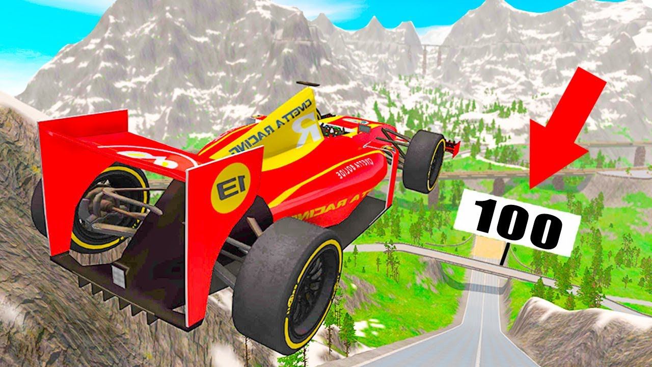 КТО ДАЛЬШЕ ПРЫГНЕТ ЧЕЛЛЕНДЖ! МЕГА ТРАМПЛИН В ГОРАХ! ЧАСТЬ 2 ФОРМУЛА 1 И ЛУЧШИЕ ТАЧКИ В BeamNG.drive