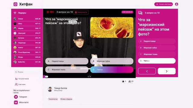 Викторина платформы интерактивных викторин ХитФан с ведущим DFM Тимуром Беловым от 4 ноября