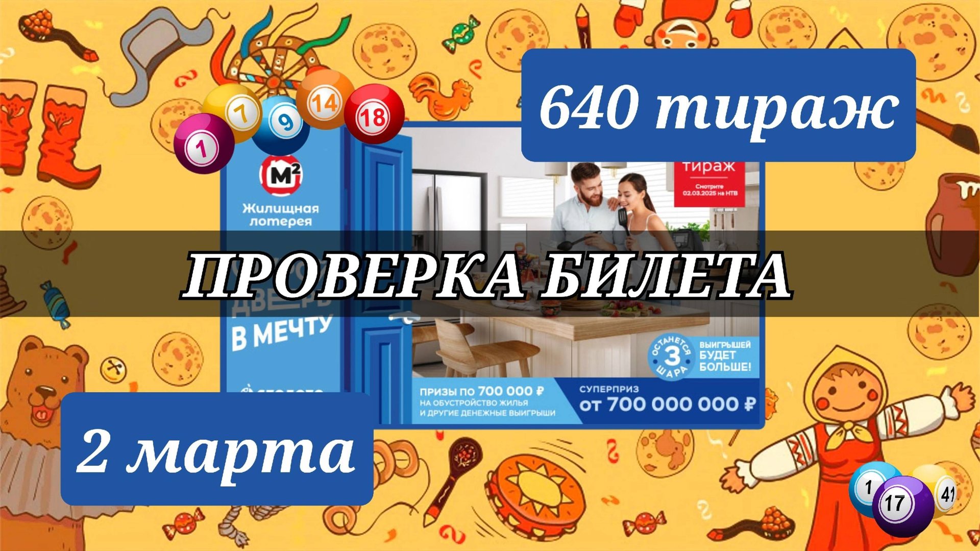 Проверяю билет ЖИЛИЩНАЯ ЛОТЕРЕЯ 640 тираж 2 марта.