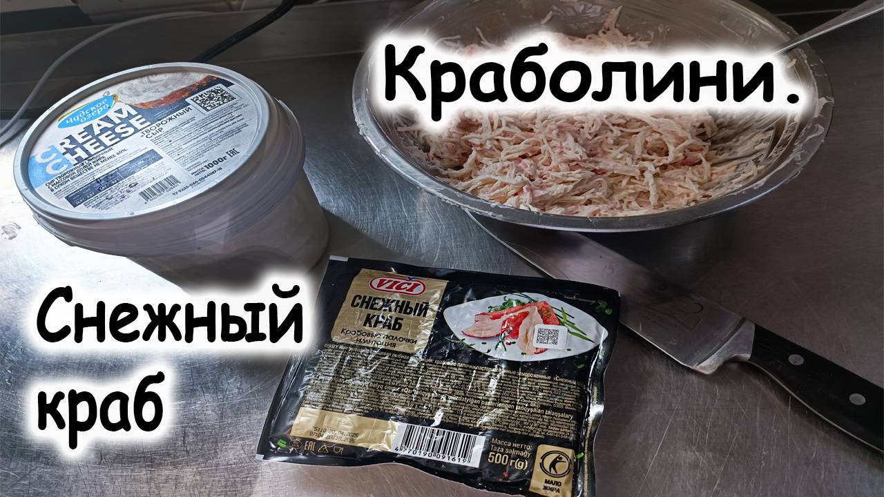 Шеф-Россия.рф скачать: книги, меню, ттк, рецепты, школа, мастер классы. Брускетта с крабом (Краболини) — классическая итальянская закуска, для приготовления которой можно использовать мясо снежного краба. Ингредиенты (на 2 порции): 2 ломтика зернового или ржаного хлеба; 100 г Снежный краб; 3–4 вяленых помидора; половина авокадо; несколько листьев салата; домашний майонез; несколько перьев зелёного лука; соль, чёрный перец. Попробуйте приготовить брускетту с крабом вместе с нами! Рецепт приготовления Приготовить майонез с зерновой горчицей и лимонным соком. Разобрать мясо краба на волокна двумя вилками, добавить мелко нарезанные вяленые помидоры и майонез, перемешать и отставить в сторону. Подсушить хлеб с обеих сторон на гриле или в духовке и дать немного остыть. Намазать хлеб небольшим количеством майонеза, а сверху выложить тонко нарезанный салат и авокадо, очищенный и нарезанный ломтиками. Последним слоем поверх авокадо выложить краба, смешанного с майонезом и вялеными помидорами. Приправить свежемолотым чёрным перцем и солью, посыпать тонко нарезанным зелёным луком и подавать. Краболини Снежный кра 200гр. сыр сливочный (можно заменить на яйцо) 100гр. майонез ( не обязательно) 50 гр. все смешать использовать, готово к применению. можно использовать как начинку для лаваша, бутерброда, или просто накрутить шариков. Крабовые палочки «Снежный краб» — продукт, имитирующий мясо краба, изготовленный из рыбного фарша (сурими). Некоторые характеристики: Состав: сурими (фарш из филе белой рыбы, сахар, яичный белок, стабилизаторы), питьевая вода, картофельный крахмал, растительное масло, соль, ароматизаторы. Пищевая ценность на 100 г: белки — 9,9–10,2 г, жиры — 2,7–3,1 г, углеводы — 10–13,5 г. Крабовые палочки — вид продуктов питания, которые имитируют крабовое мясо. По форме и цвету напоминают мясо крабьей клешни или ноги. Несмотря на название, крабового мяса в составе нет — основу составляет рыбный фарш сурими. Крабовые палочки Крабочки замороженные 100 г - состав и характеристика - Мегамаркет История Крабовые палочки появились в Японии в 1973 году. Японская компания Sugiyo Co. Ltd. изобрела продукт под названием Kanikama — имитацию крабового мяса из рыбы. На международном рынке продукт впервые представила Berelson Company в 1976 году. В СССР производство крабовых палочек было налажено в Мурманске в 1984 году на заводе «Протеин». Состав Основные ингредиенты крабовых палочек: сурими — очищенный рыбный белок, основа; вода — для придания пластичности и улучшения текстуры; крахмал — загуститель, придаёт палочкам плотность и эластичность; растительное масло — улучшает структуру и делает продукт более сочным; яичный или соевый белок — стабилизирует массу, обеспечивает нужную консистенцию; соль и сахар — усиливают вкус и улучшают текстуру; глутамат натрия (усилитель вкуса) — придаёт характерный крабовый вкус; красители (пищевой красный, паприка или кармин) — используются для окрашивания внешнего слоя в красно-оранжевый цвет. Состав может варьироваться в зависимости от производителя. Польза и вред Некоторые полезные свойства крабовых палочек: содержат белок, который легче усваивается, чем мясной; имеют низкую калорийность (примерно 80–100 ккал на 100 г); содержат витамины группы В, фосфор и йод. Некоторые риски, связанные с крабовыми палочками: в составе могут быть усилители вк