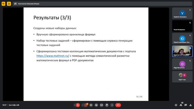 Докладчик: Николаев Константин Сергеевич Тема: Методы и алгоритмы обработки математического контента на основе технологий семантического веба (кандидатская диссертация)