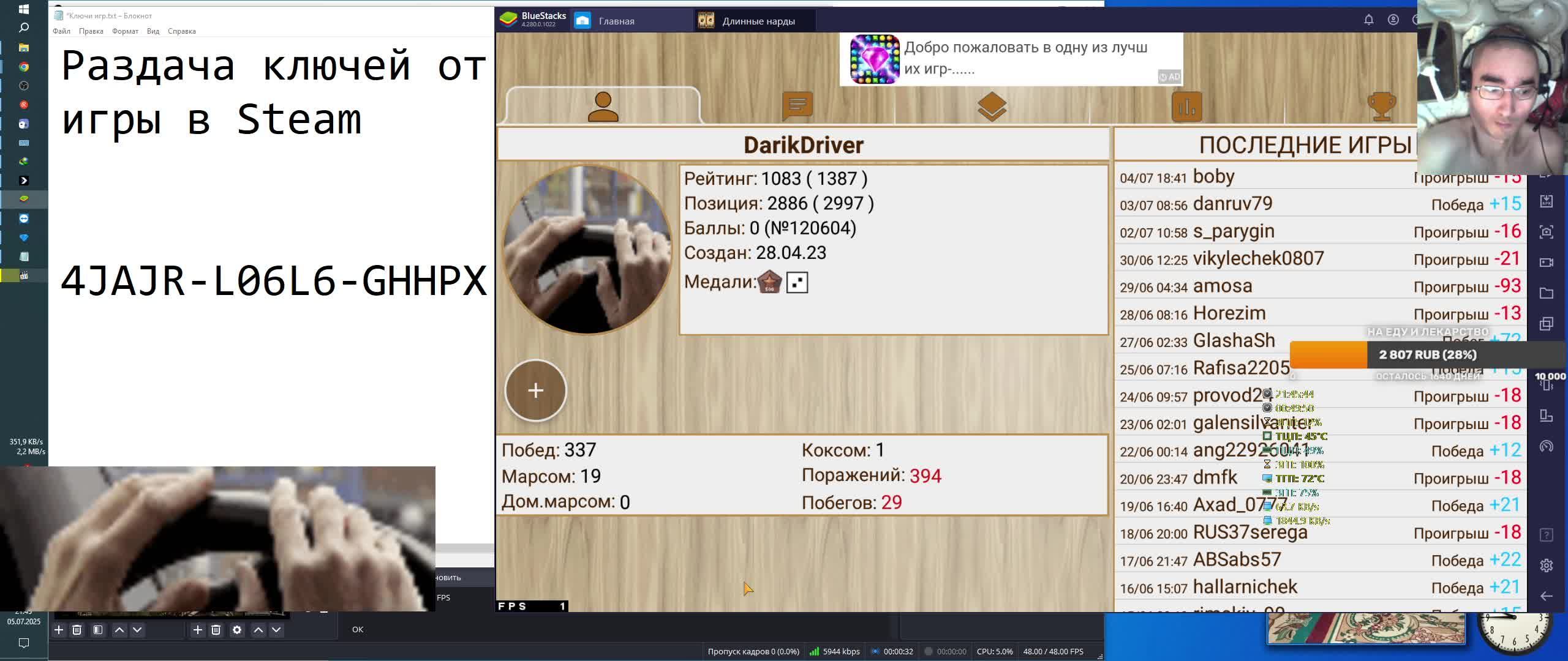 Раздача ключей от игры в Steam
