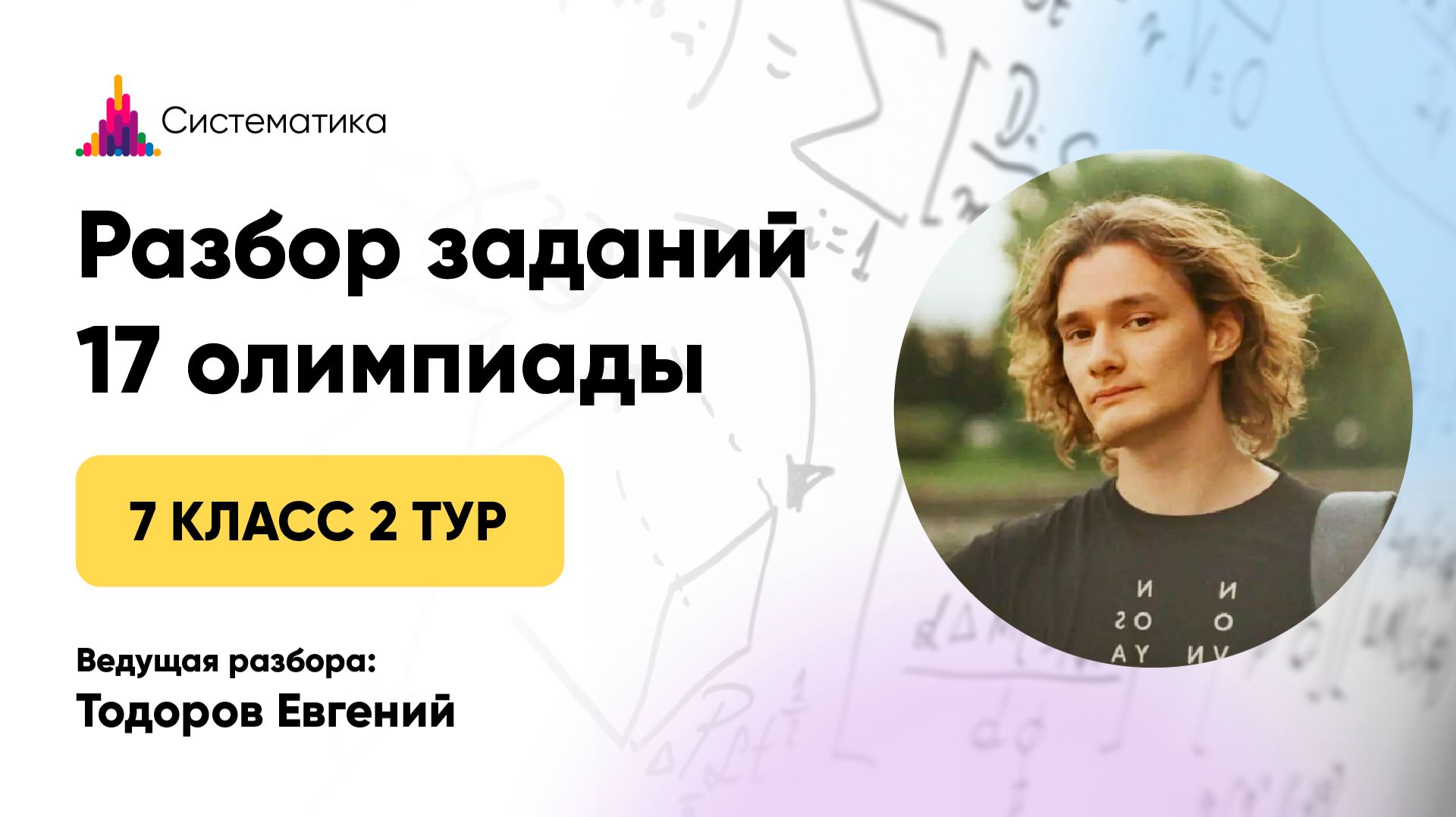 Разбор задач 2 тура 17 олимпиады по математике для 7 класса Записаться на очередную олимпиаду — https://systematika.org/olimpiada/math/ Онлайн-занятия в мини-группах По одному абонементу можно заниматься сразу в нескольких кружках. Олимпиадная математика для 1–9 классов — https://systematika.org/online-courses/live-math/ Шахматы для 1–9 классов — https://systematika.org/online-courses/chess/ ТРИЗ для 1–7 классов — https://systematika.org/online-courses/triz/ Биология для 3–7 классов — https://systematika.org/online-courses/biology/ Индивидуальные занятия Опытные преподаватели из лучших вузов России помогут достичь высоких результатов в обучении! Олимпиадная математика — https://systematika.org/online-courses/live-math-repetitor/ Школьная математика — https://systematika.org/online-courses/school-math-repetitor/ Шахматы — https://systematika.org/online-courses/chess-repetitor/ ТРИЗ — https://systematika.org/online-courses/triz-repetitor/ Биология — https://systematika.org/online-courses/biology-repetitor/ Химия — https://systematika.org/online-courses/chemistry-repetitor/ Физика — https://systematika.org/online-courses/physics-repetitor/ Курсы Выбирайте только те темы, которые интересны вам. Олимпиадная математика — https://systematika.org/items/matematika/ Программирование — https://systematika.org/items/programmirovanie/ Физика — https://systematika.org/items/fizika/ История — https://systematika.org/items/istoriya/ Шахматы — https://systematika.org/items/shahmaty/ Soft skills — https://systematika.org/items/soft-skills/ Более 150 курсов в записи и вживую на сайте — https://systematika.org/form/courses/