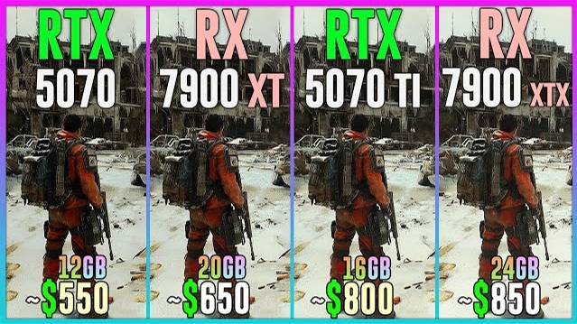 RTX 5070 vs RX 7900 XT vs RTX 5070 TI vs RX 7900 XTX - Test in 25 Games 2025 1080p, 1440p, 2160p, 4k, 2k, dlss 4, dlss 3.7, fsr 4, fsr 3.1, ray tracing, frame generation, native, Multi Frame Generation ⏩GPUs & Amazon US⏪ (Affiliate links) 💥RTX 5070 12GB: https://amzn.to/41sJCN 💥RX 7900 XT 20GB: https://amzn.to/47KIg2P 💥RTX 5070 TI 16GB: https://amzn.to/4198utc 💥RX 7900 XTX 24GB: https://amzn.to/3YOZB6q ⏩PC Setup⏪ - OS: Windows 11 Professional 64-bit - CPU: Ryzen 7 9800X3D - MB: GIGABYTE X870 AORUS Elite - RAM: Corsair Vengeance RGB 32GB DDR5 - 6400 Mhz CL32 💁♂️ When you buy from my Amazon links, I earn a small commission at no extra cost to you, plus you support the channel thank you.