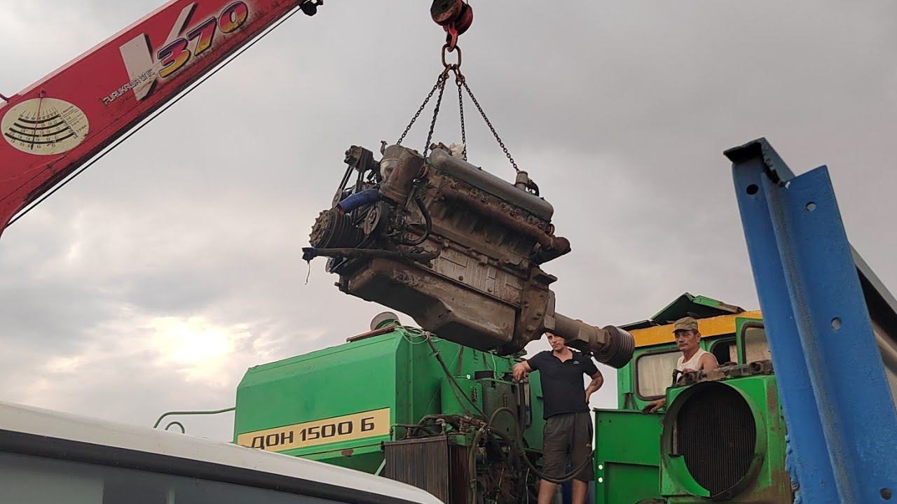Сняли двигатель с комбайна Дон-1500б и отвезли в сервисный центр ЯМЗ.