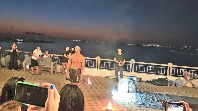 Анапа 2022. Фаер шоу огненное шоу на Набережной города курорта Анапа вечером у кораблика Алые паруса