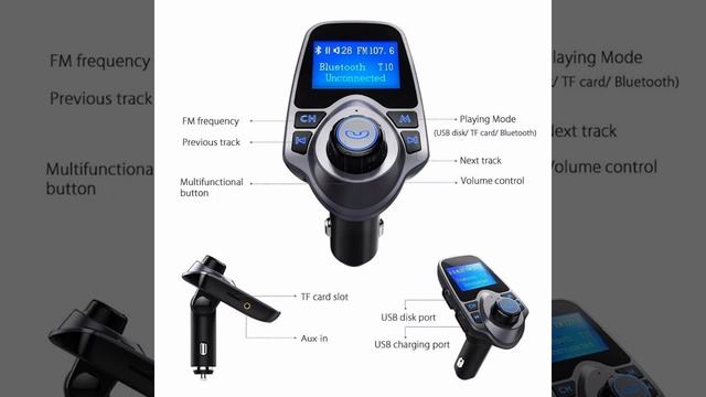 http://www.bargaineleven.com/products/bluetooth-car-fm-transmitter-hands-free-calling-with-usb-charger Click The Link To Learn More The Car Bluetooth Receiver works with smartphones Samsung iPhone, iPad, iPod, Tablet and more;Supporting AUX output and input, work with SD, TF card or MP3, MP4 players via 3.5mm audio jack. Support A2DP, achieve the stereo music lossless transfer to your car speaker. Built-in microphone feature can offers your hands free talking and wonderful music. 1.44inch LED screen display can show current voltage of the storage battery of your car, the name of songs or caller ID, connect information, also FM channel and volume. With an universal USB port, charging your cellphones or other devices as car charger. Such as apple iPhone 5 5S 6 6S Plus;Android Samsung Galaxy S3 S4 Note 3, LG G5 G4, Nokia, Motorola, Power Bank etc. Just plug the FM Transmitter in the car cigarette lighter, control it and the car radio at the same frequency. Then let your phone/audio player connects this FM music gear via bluetooth/audio line. Feature: Provides hands-free conversations through your car speakers. With a car charger port, you can use it to charge your device when you are driving. Designed for plugged in the car cigarette lighter, not pick car models. 1.44inch LED display, enable to show you the current voltage of the storage battery of your car, also show the name of songs or caller ID. Tips: 1,Press and hold the multifunction button 8-10 seconds, switch voice prompts in English or Chinese. 2,Adjust your transmitter and car radio to the same FM station to avoid noise. 3,To make sure the perfect sound, don't adjust the sound volume of the your car speaker to maximum; If you need louder sound, you can adjust the sound volume of your phone or FM Transmitter. 4,The product contain a AUX cable, but not include a TF/SD card.