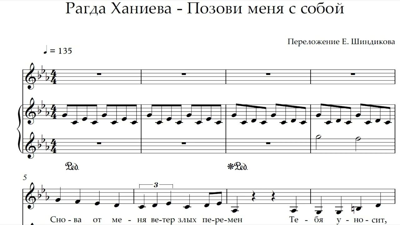 Ноты Рагда Ханиева (Голос. Уже не дети) - Позови меня с собой (автор Т. Снежина)