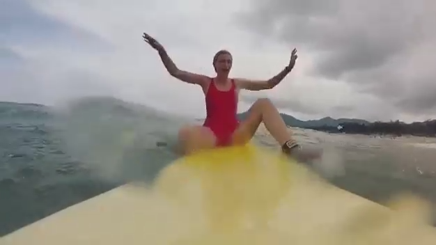 Девушка каталась на доске для серфинга и попала в стаю рыб, которые выпрыгивали из воды. #девушки #серфинг #рыбы #испуг #фейл #прикол