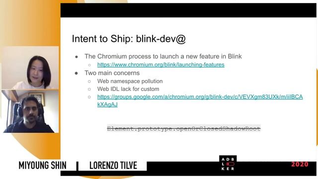 From AdBlocker Developer Summit 2020 Miyoung Shin and Lorenzo Tilve from Igalia discuss work in the Chromium open source browser project, performed by Igalia to improve things for ad Bbocking and content blocking use cases. Slides available at https://www.slideshare.net/igalia/fixinggaps-strengthening-the-chromium-platform-for-content-blocking