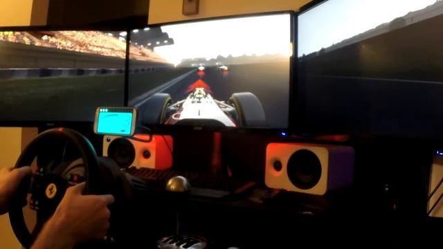 Project Cars running at 7680x1440 resolution 60 FPS average. PC Specs: OS : Windows 10 64 bit Motherboard : MSI Z97 Gaming 5 CPU : Intel Core i7-4790K 4.7GHz RAM : 2 x 4GB G Skill Sniper DDR3 1866MHz GPU : MSI GTX 980 Gaming 4G OC 1544MHz GPU : MSI GTX 980 Gaming 4G OC 1544MHz PSU : EVGA Supernova 1000P 1000W 80+ Platinum Certified Fully Modular HDD : 1TB Seagate Barracuda 7200RPM with RAID 0 partition HDD : 1TB Seagate Barracuda 7200RPM with RAID 0 partition HDD : 1.5TB Seagate Barracuda 7200RPM with RAID 0 partition SSD : Kingston SSDNow V300 120GB NZXT H440 Case Logisys LED's 3 x NZXT 120mm case fans Silverstone white sleeved PSU extensions MSI LED SLI Bridge Watercooling: 2 x EK-FC980 GTX TF5 Acetal Nickel full cover water block 2 x EK-FC980 GTX TF5 backplate Koolance quick disconnects EK Supremacy EVO CPU block EK Dual Serial Terminal Phobya Balancer 150 reservoir Phobya DC12-400 pump 3 x Corsair SP120 static pressure fans 3 x Corsair SP140 static pressure fans XSPC EX420 radiator XSPC EX240 radiator XSPC EX120 radiator Bitspower flow indicator Koolance 3/8" ID 1/2" OD compression fittings Koolance Swivel 90 fittings AlphaCool clear flex tubing 3/8" ID 1/2" OD Mayhems Pastel White coolant with Mayhems Deep Red Dye Peripherals: Thrustmaster TX wheel with Ferrari GTE wheel rim Thrustmaster T3PA Pro pedals Thrustmaster TH8A shifter CM Storm Devastator keyboard and mouse Acer XB270HU 27" G-SYNC 144Hz IPS 2560x1440 resolution Acer K272HUL 27" 60Hz IPS 2560x1440 resolution Acer K272HUL 27" 60Hz IPS 2560x1440 resolution NVIDIA Surround resolution 7680x1440 60Hz Ergotech triple monitor stand Astro A-40 Mixamp gaming headset Kanto YU3 Speakers Gloss White GoPro Hero 3+ Silver BESTEK gooseneck phone stand Samsung Galaxy S4 with DashMeter Pro App