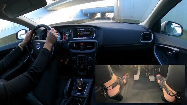✳️DRIVING HIGHWAY🛣 COUNTRY ROADS🏞 leatherpants black high heeled sandals manual Volvo V40 Car ASMR