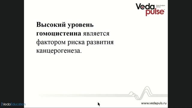 В этом видео: - Что такое гомоцестеин. Механизмы его образования в организме; - Причины гомоцестеинемии; - Основные проявления и осложнения; - Гомоцестеинемия – фактор риска кардиальной патологии; - Питание и гоцестеинемия. Роль витаминов группы В: В6, В9, В12. - Диагностика АПК «ВедаПульс». Эксперт: Арчибасова Елена Алексеевна, к.м.н., врач, доцент кафедры нормальной физиологии НГМУ