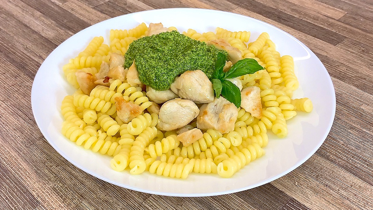 ВКУСНЕЙШИЙ ОБЕД / УЖИН (Паста с соусом песто и индейкой) УЗНАЙ КАК ПРИГОТОВИТЬ СОУС ПЕСТО рецепт