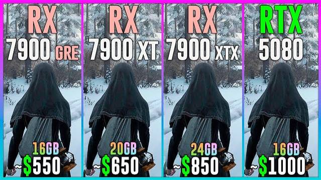 RX 7900 GRE vs RX 7900 XT vs RX 7900 XTX vs RTX 5080 - Test in 25 Games 2025 1080p, 1440p, 2160p, 4k, 2k, dlss 4, dlss 3.7, fsr 4, fsr 3.1, ray tracing, frame generation, native, Multi Frame Generation ⏩GPUs & Amazon US⏪ (Affiliate links) 💥RX 7900 GRE 16GB: https://amzn.to/3TPZAhH 💥RX 7900 XT 20GB: https://amzn.to/47KIg2P 💥RX 7900 XTX 24GB: https://amzn.to/3YOZB6q 💥RTX 5080 16GB: https://amzn.to/4jyqKER ⏩PC Setup⏪ - OS: Windows 11 Professional 64-bit - CPU: Ryzen 7 9800X3D - MB: GIGABYTE X870 AORUS Elite - RAM: Corsair Vengeance RGB 32GB DDR5 - 6400 Mhz CL32 💁♂️ When you buy from my Amazon links, I earn a small commission at no extra cost to you, plus you support the channel thank you.