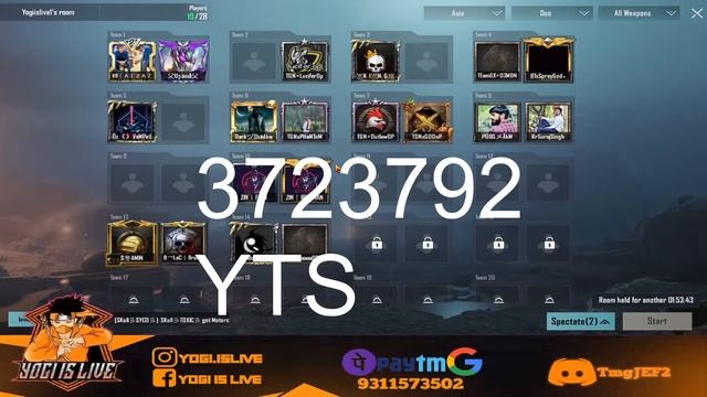 Free Customs are played on day to day basis they can be in either form that is a Classic customs or Arena that 1 vs 1, 2 vs 2 etc on demands of viewers watching the stream through live chat. ***ALERT:- Free UC give away in random matches based on your game play.*** Paid Customs are played on every Sunday for Paid Customs Related Enquiry DM on https://instagram.com/yogi.islive?igshid=sl3zsawnkiox Social Media Instagram https://instagram.com/yogi.islive?igshid=sl3zsawnkiox discord - https://discord.gg/TmgJEF2 PC Specs Processor AMD Ryzen 5 3600 Core(6) @3.60 GHz Video Card NVIDIA GEFORCE RTX 2060 super RAM 16 GB