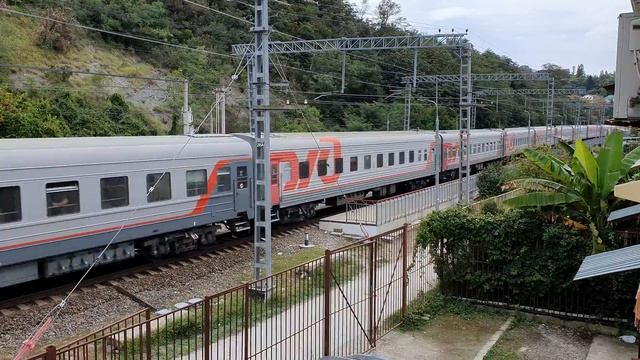 19 сентября 2021 годв в 13:41 платформа Волконская перегон Лазаревская-Чемитоквадже Северо-Кавказская железная дорога from the hotel window, train N533 Moscow-Adler under 2ES4K-066 along Volkonskaya September 19, 2021 at 13:41 Volkonskaya platform section Lazarevskaya-Chemitokvadzhe Severo-Kavkazskaya Railway