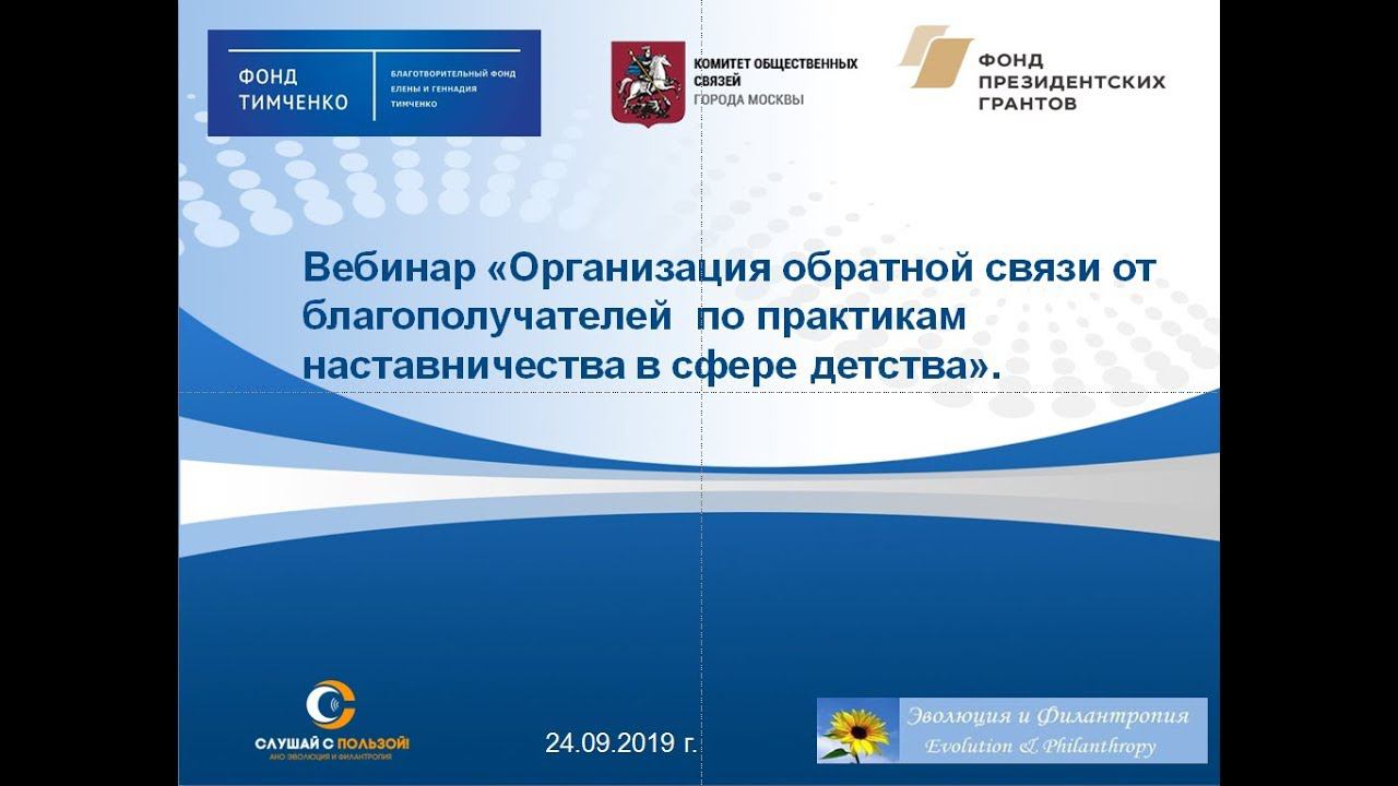Вебинар "Организация обратной связи от благополучателей по практикам наставничества"